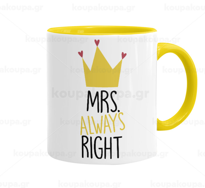 Mrs "Always" right, Mug colored yellow, ceramic, 330ml
