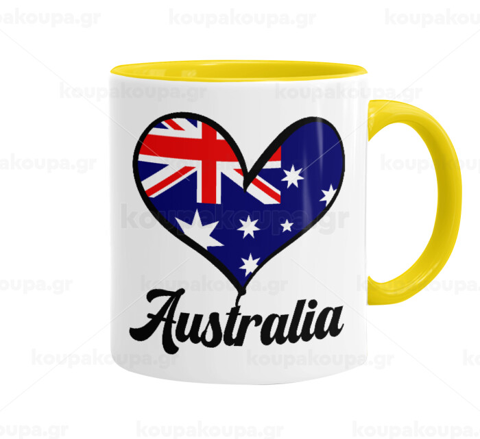Australia flag, Mug colored yellow, ceramic, 330ml
