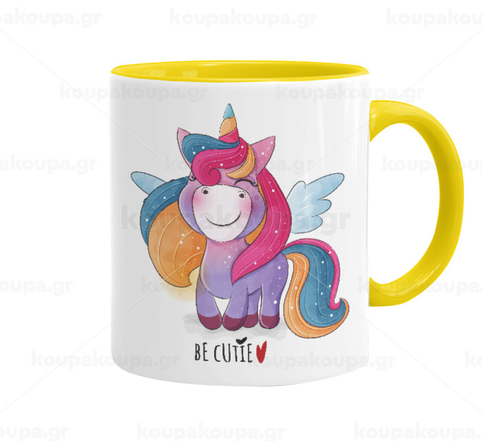 Pink unicorn, Mug colored yellow, ceramic, 330ml