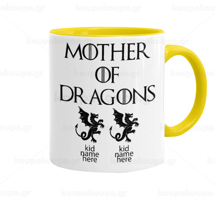 GOT, Mother of Dragons (με ονόματα παιδικά), Mug colored yellow, ceramic, 330ml