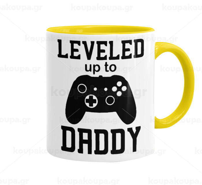 Leveled to Daddy, Mug colored yellow, ceramic, 330ml