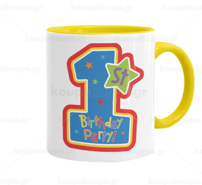 Happy 1st Birthday, Mug colored yellow, ceramic, 330ml