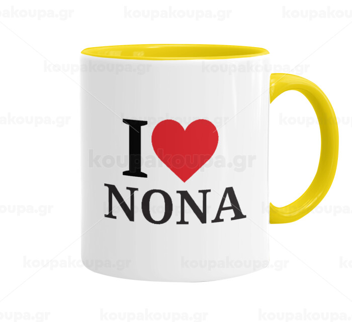 I Love ΝΟΝΑ, Mug colored yellow, ceramic, 330ml