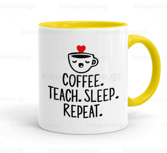 Coffee Teach Sleep Repeat, Mug colored yellow, ceramic, 330ml