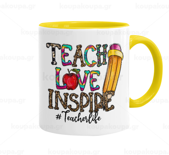 Teach, Love, Inspire, Mug colored yellow, ceramic, 330ml