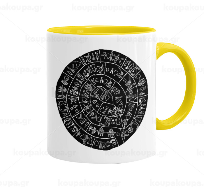 Δίσκος Φαιστού, Mug colored yellow, ceramic, 330ml