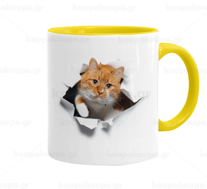 Cat cracked, Mug colored yellow, ceramic, 330ml
