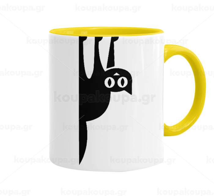 Cat upside down, Mug colored yellow, ceramic, 330ml