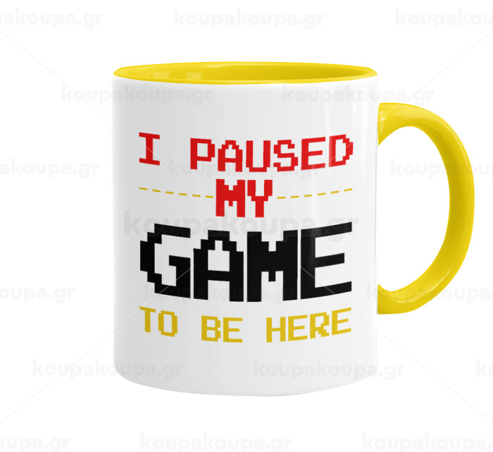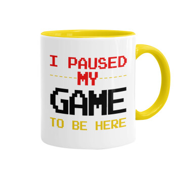 I paused my game to be here, Mug colored yellow, ceramic, 330ml