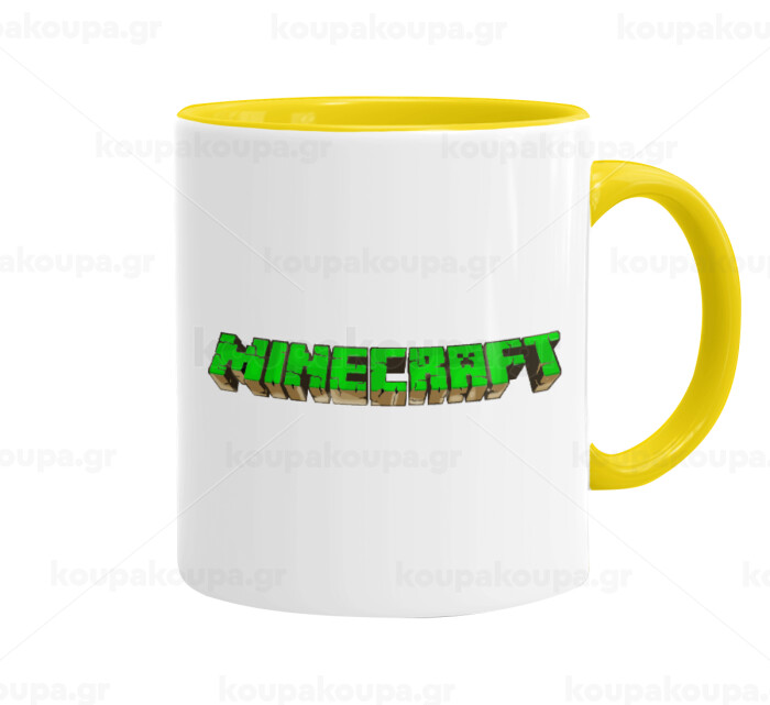 Minecraft logo green, Mug colored yellow, ceramic, 330ml