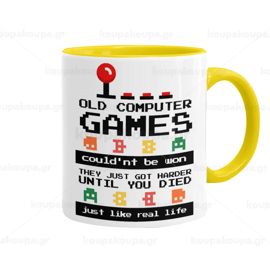 OLD computer games couldn't be won just like real life!, Mug colored yellow, ceramic, 330ml