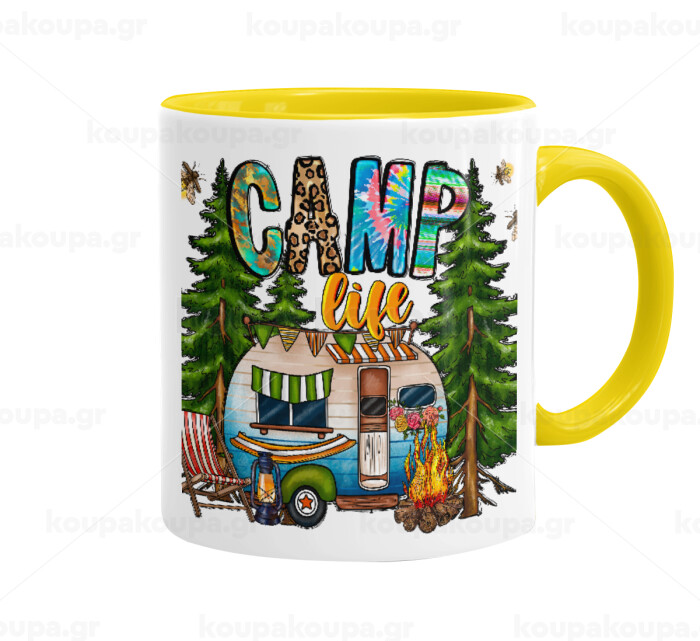 Camp Life, Mug colored yellow, ceramic, 330ml
