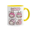 Labubu pink, Mug colored yellow, ceramic, 330ml