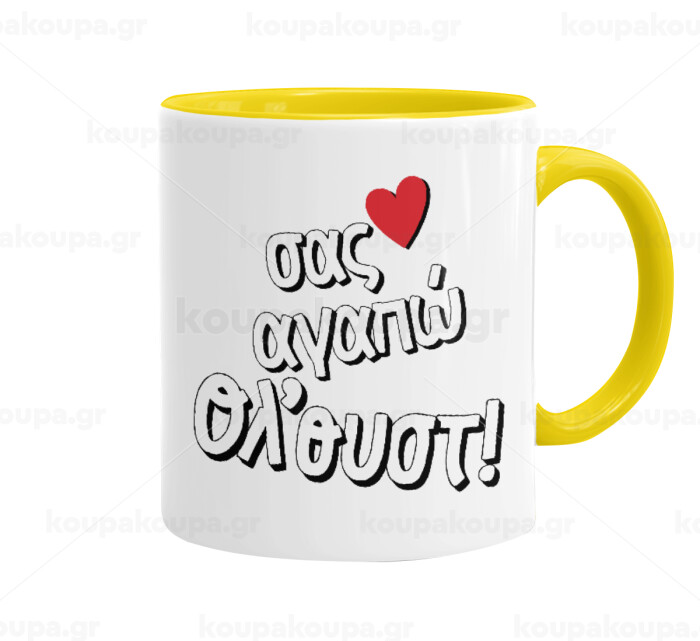 Σας αγαπώ όλ'ουστ!, Mug colored yellow, ceramic, 330ml