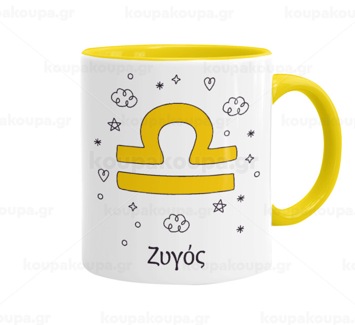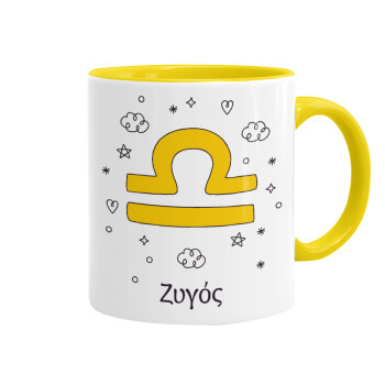 Ζώδια Ζυγός, Mug colored yellow, ceramic, 330ml