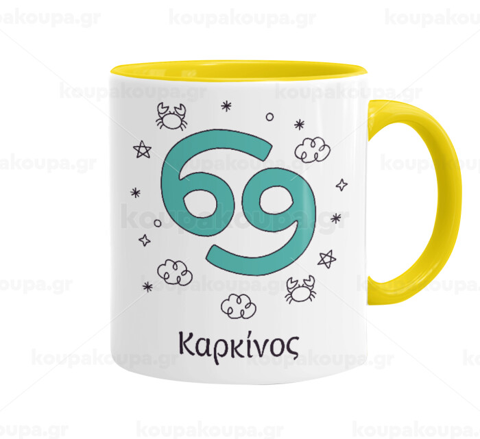 Ζώδια Καρκίνος, Mug colored yellow, ceramic, 330ml