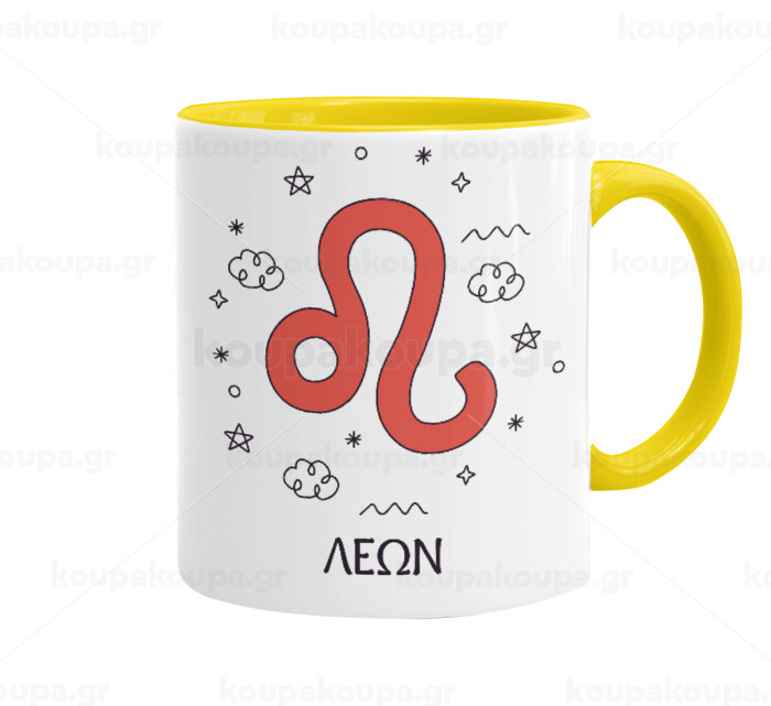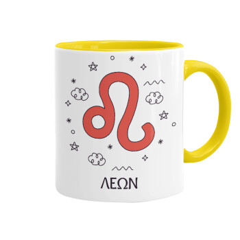 Ζώδια Λέων, Mug colored yellow, ceramic, 330ml