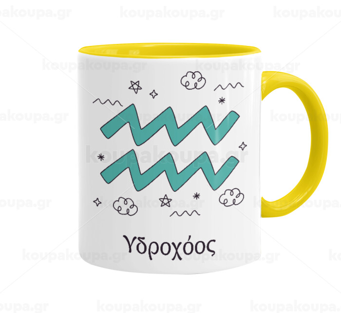 Ζώδια Υδροχόος, Mug colored yellow, ceramic, 330ml