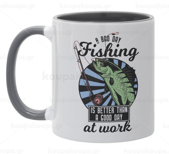 A bad day FISHING is better than a good day at work, Mug colored grey, ceramic, 330ml