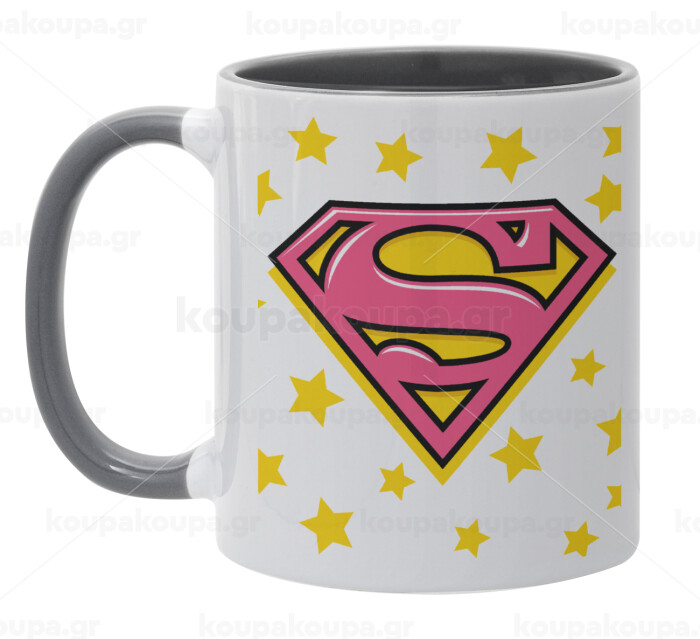Superman Pink, Mug colored grey, ceramic, 330ml