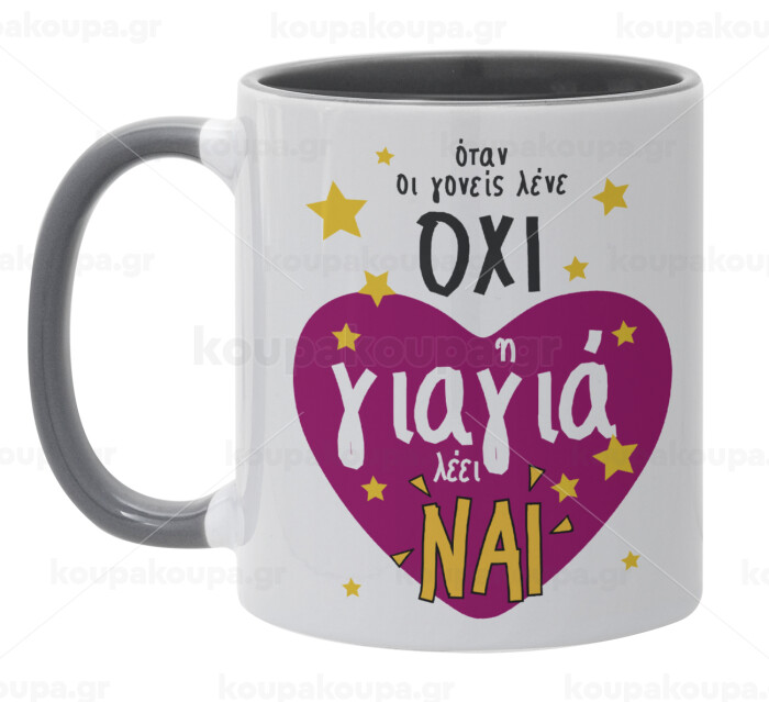 Όταν οι γονείς λένε ΟΧΙ, η γιαγιά λέει ΝΑΙ, Mug colored grey, ceramic, 330ml