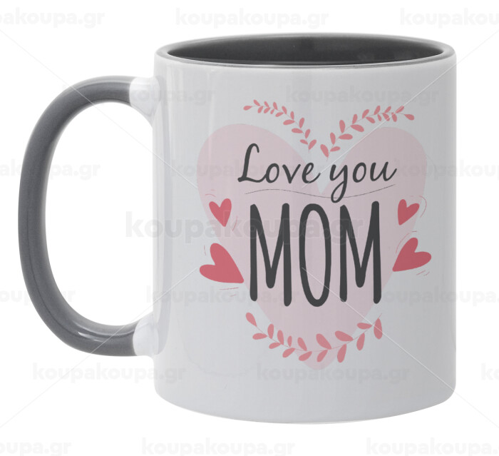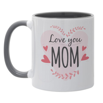 Mother's day I Love you Mom heart, Mug colored grey, ceramic, 330ml