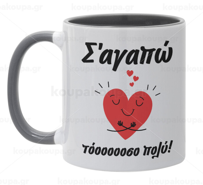 Σ΄αγαπώ τόοοοσο πολύ καρδιά, Mug colored grey, ceramic, 330ml