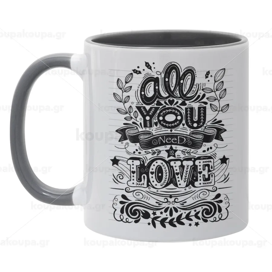All you need is love, Mug colored grey, ceramic, 330ml