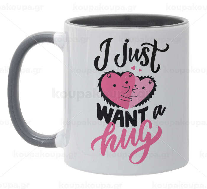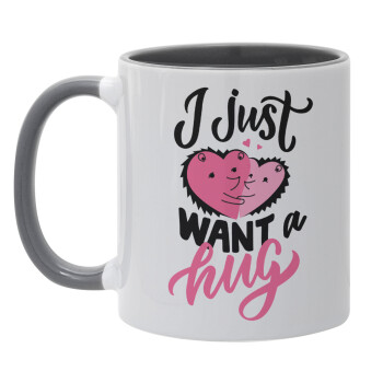 I Just want a hug!, Mug colored grey, ceramic, 330ml