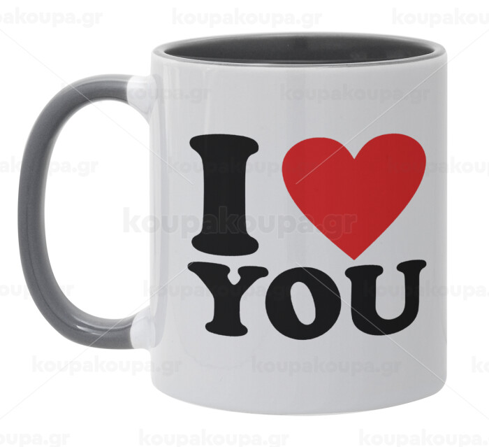 I LOVE YOU, Mug colored grey, ceramic, 330ml