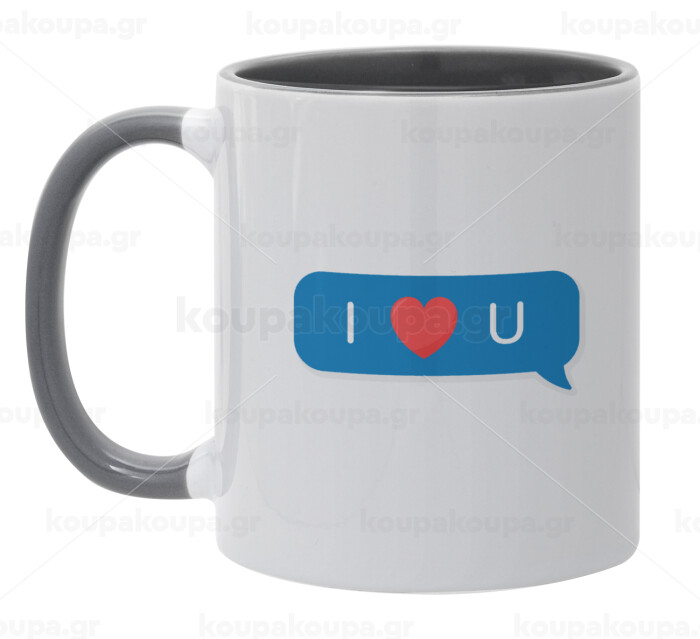 I Love You text message, Mug colored grey, ceramic, 330ml