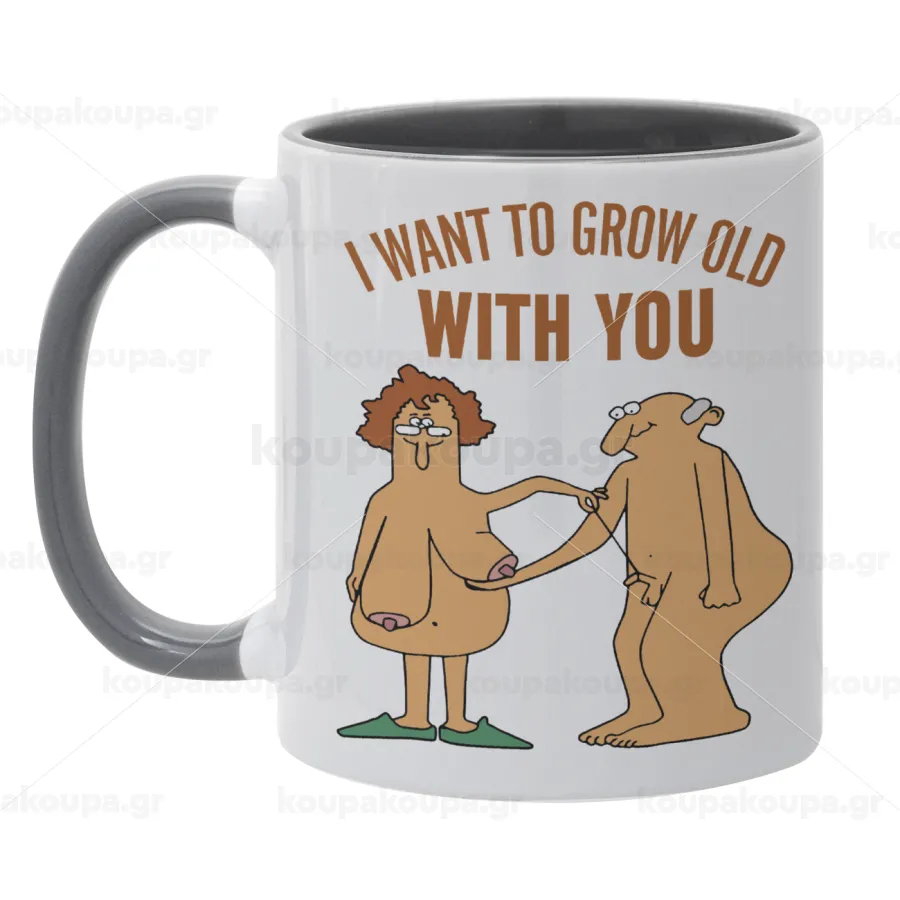 I want to grow old with you, Mug colored grey, ceramic, 330ml