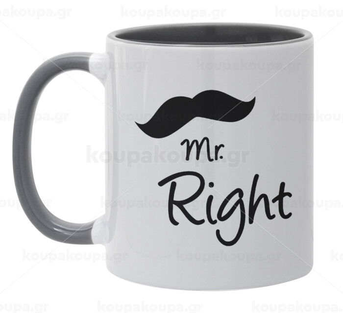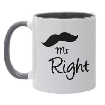 Mr right Mustache, Mug colored grey, ceramic, 330ml