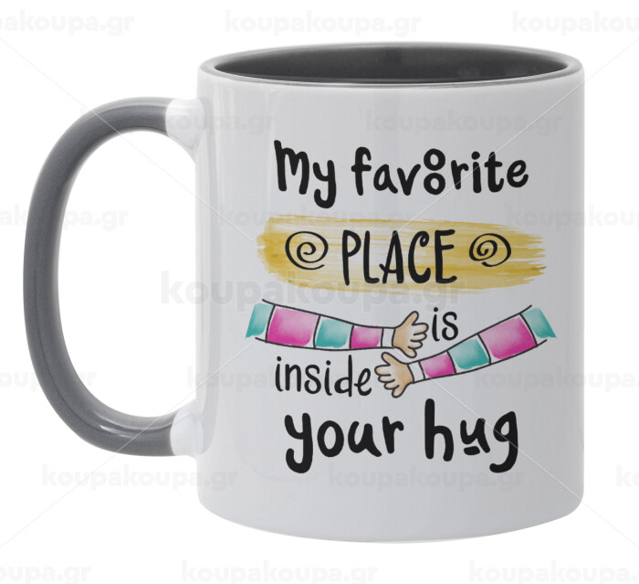 My favorite place is inside your HUG, Mug colored grey, ceramic, 330ml
