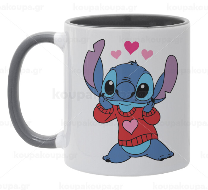 Stitch heart, Mug colored grey, ceramic, 330ml