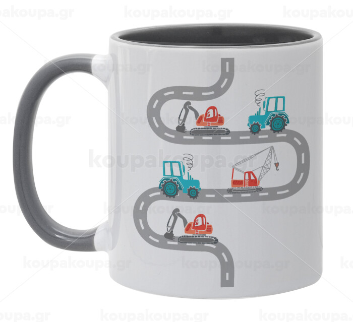 excavator along road, Mug colored grey, ceramic, 330ml