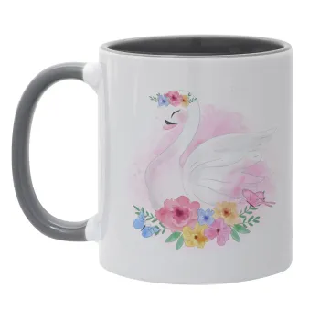 White swan, Mug colored grey, ceramic, 330ml
