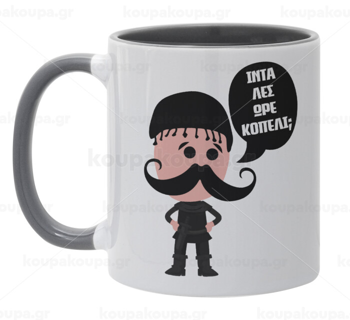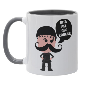 Κρητικός "Ίντα λες ωρέ κοπέλι", Mug colored grey, ceramic, 330ml
