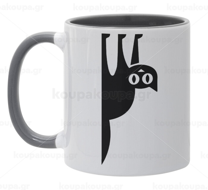 Cat upside down, Mug colored grey, ceramic, 330ml