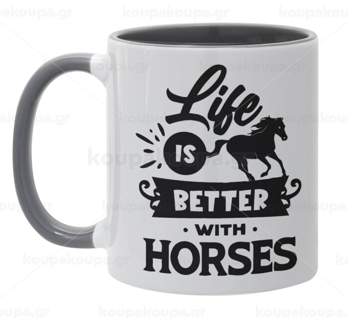 Life is Better with a Horses, Mug colored grey, ceramic, 330ml