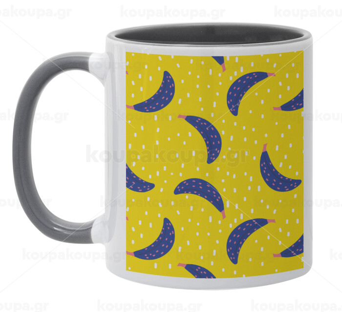 Yellow seamless with blue bananas, Mug colored grey, ceramic, 330ml