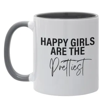 Happy girls are the prettiest, Mug colored grey, ceramic, 330ml