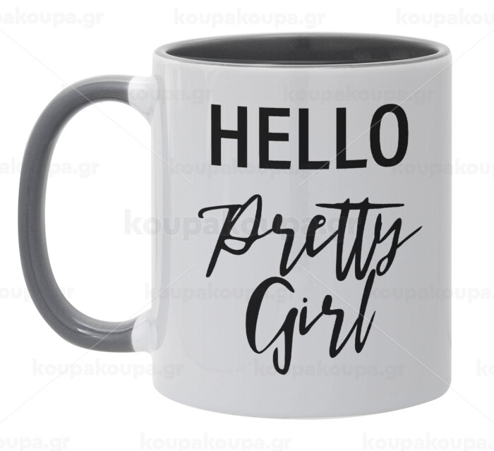 Hello pretty girl, Mug colored grey, ceramic, 330ml