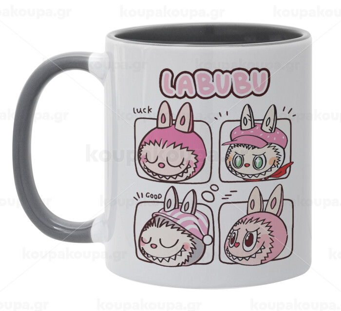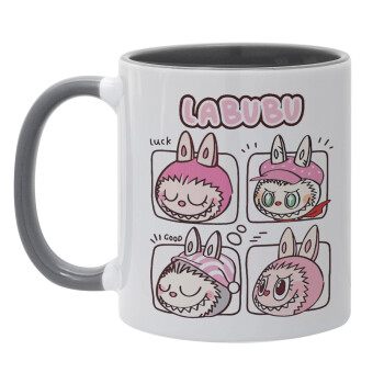 Labubu pink, Mug colored grey, ceramic, 330ml