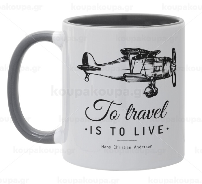 To travel is to live, Mug colored grey, ceramic, 330ml