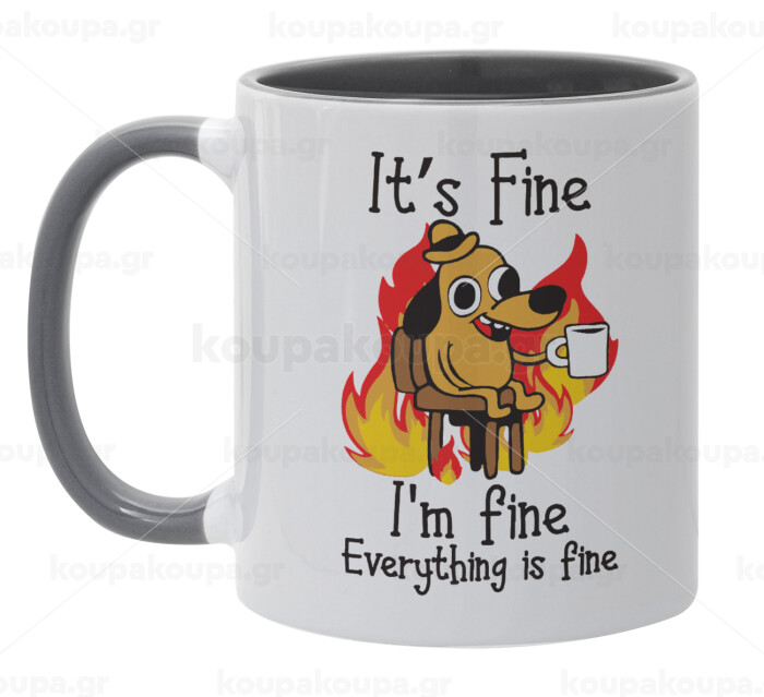 It's Fine I'm Fine Everything Is Fine, Mug colored grey, ceramic, 330ml