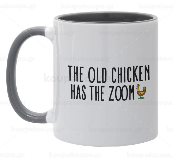 The old chicken has the zoom, Mug colored grey, ceramic, 330ml