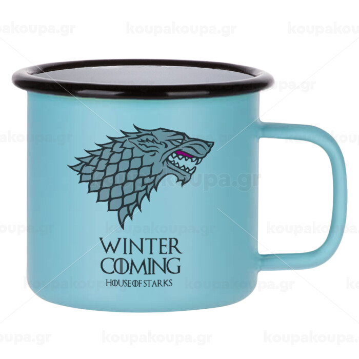 GOT House of Starks, winter coming, Κούπα Μεταλλική εμαγιέ ΜΑΤ σιέλ 360ml
