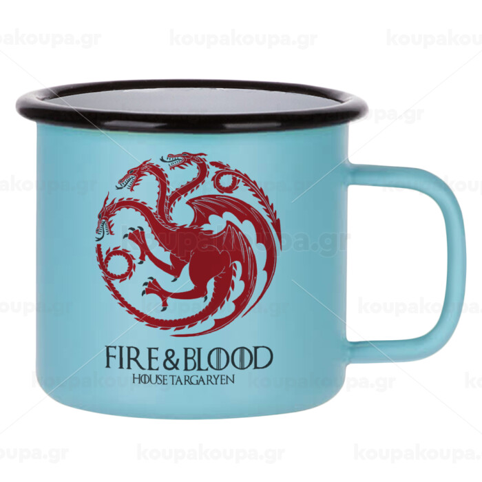 GOT House Targaryen, Fire Blood, Κούπα Μεταλλική εμαγιέ ΜΑΤ σιέλ 360ml