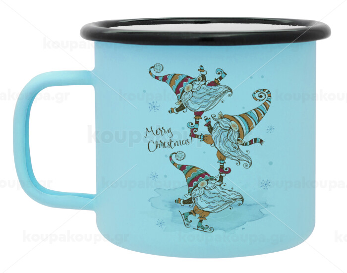 Christmas nordic gnomes, Κούπα Μεταλλική εμαγιέ ΜΑΤ σιέλ 360ml